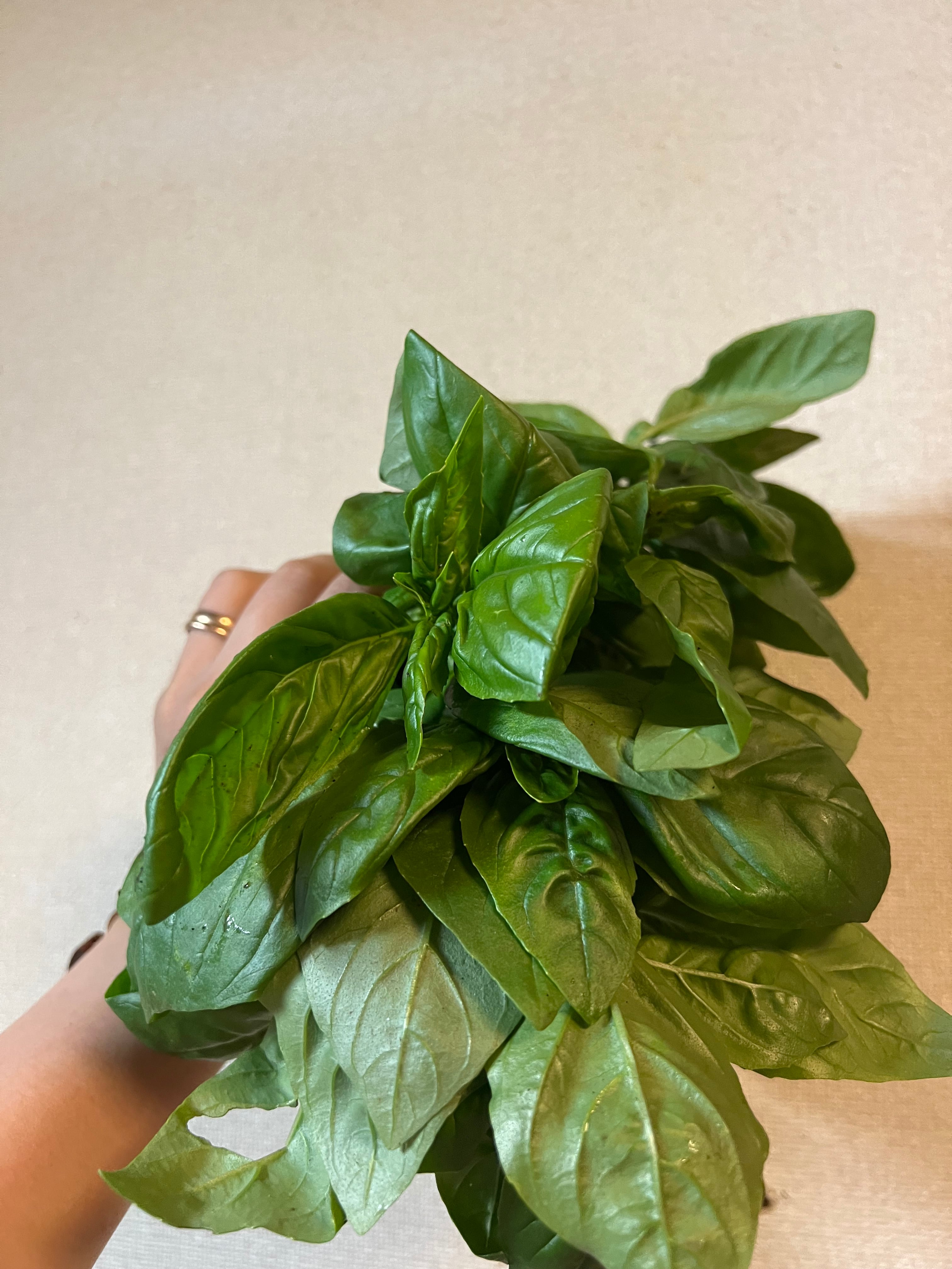 無農薬栽培で育ったバジルを収穫したその日に加工しました。